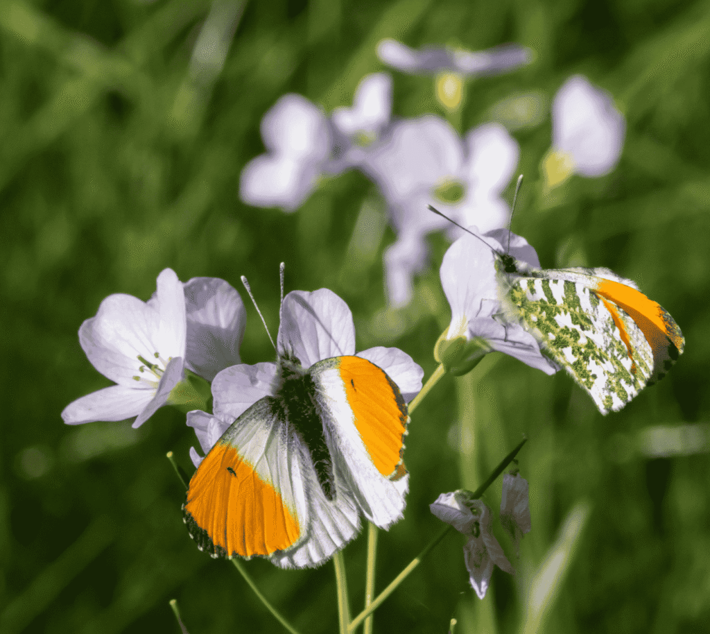 Plant violer og storplettet perlemorssommerfugl eller aurora vil måske komme forbi. Eller plant forskellige arter af snerre, og duehalen vil måske vælge netop dine planter at lægge deres æg på.